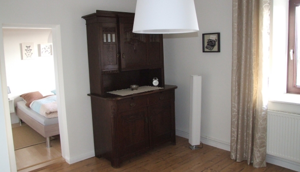 Die niedliche 3 Zimmerwohnung ist mit antiken und neuen Möbeln ausgestattet